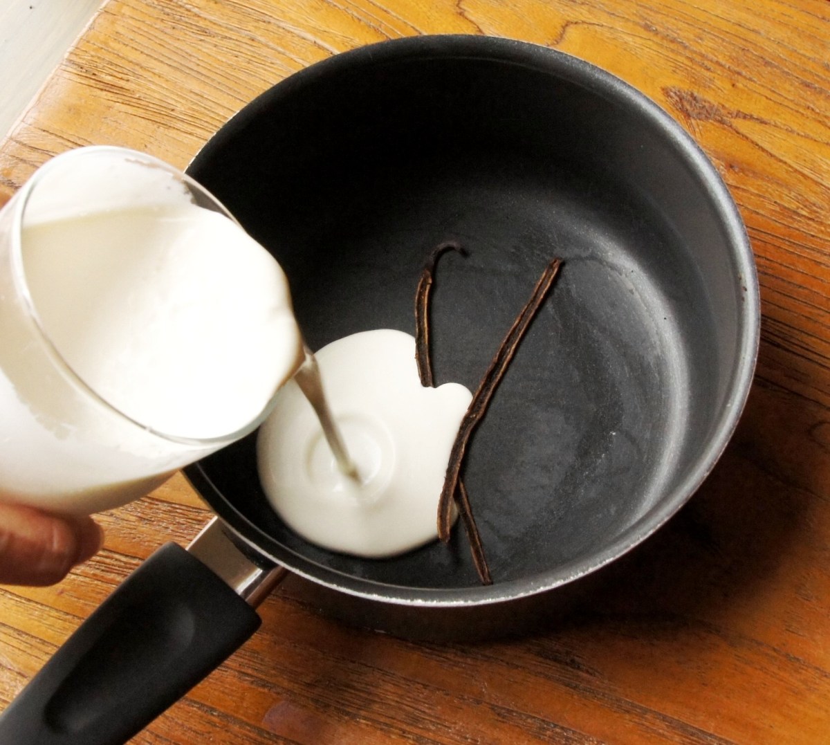 Add cream to vanilla pod