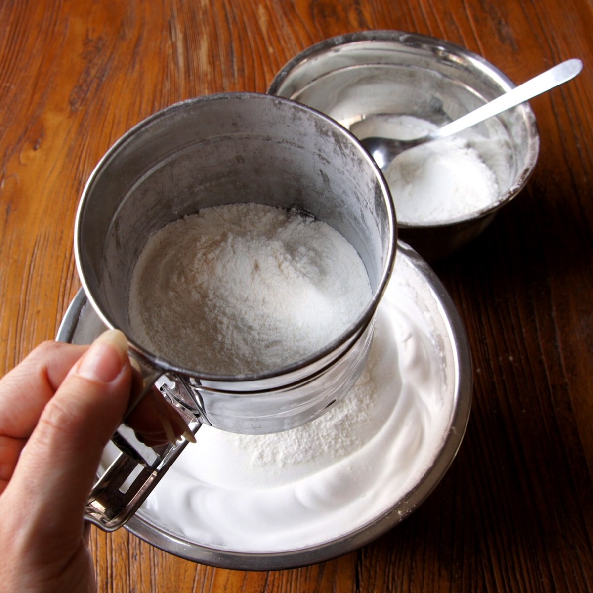 Published 16/03/2015 at 1361 × 1362 in Almond Angel Cake with Amaretto Cream Sift 1/3 of flour mix over egg mix ← Previous Next →