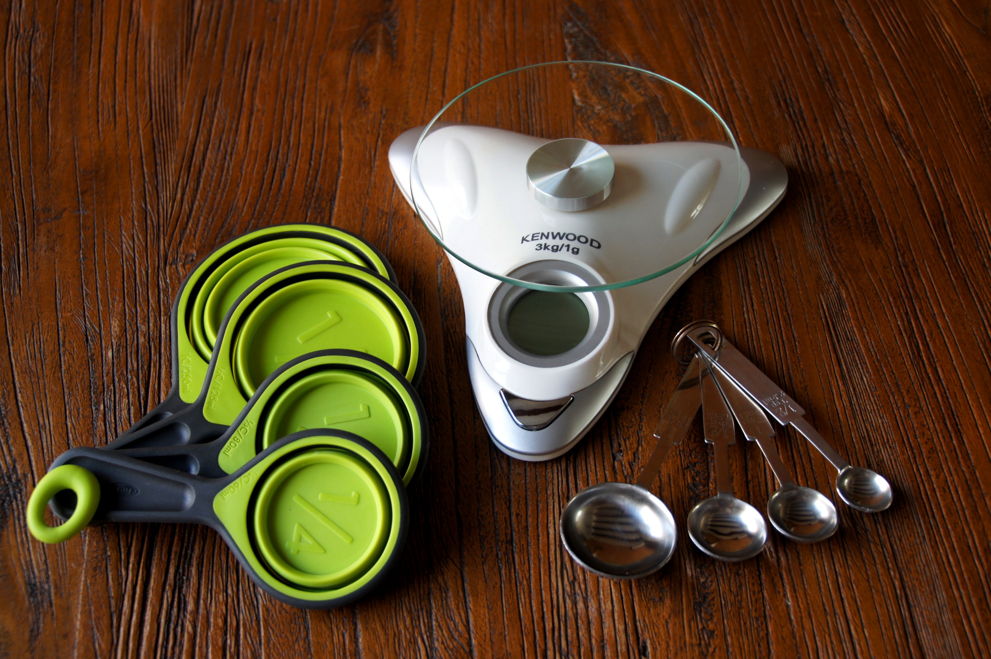 I use cups, spoons and scales to measure and weight the ingredients. The first ‘measuring tool’ I had as a kid was a measuring jug for both liquids and dry ingredients. Today I find it less convenient, simply because you might need to measure a dry ingredient after a liquid, with some time and effort spent on cleaning and drying the jug as a result. My personal preference is to measure liquids (e.g. milk, cream water) by volume, and use scales for dry ingredients.