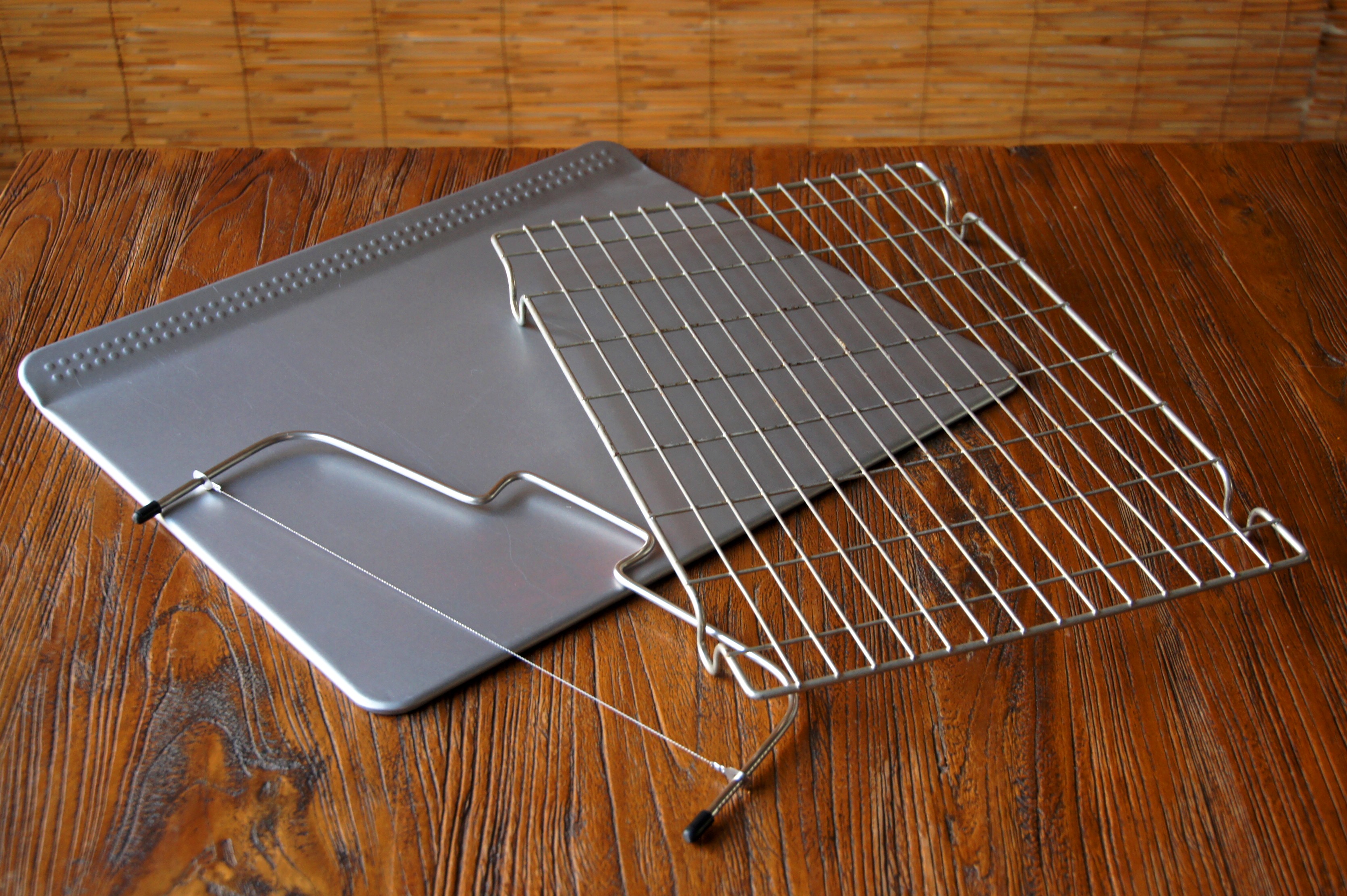 I was rather skeptical of wire wrack(s), up until the moment I got myself one and cooled my first cake on it. It was a totally different story with a cake layer slicer though. As long as I could remember I used thick silk threads for cake layering, and it was never perfectly even. My cake-layering perfectionism was satisfied with this little device here. And the flat baking tray. For some reason I forgot to put it together with all other ‘trays’ above, but it actually deserves a special mention since it delivered numerous swirls, kisses and yo-yo bites, all to-perfection.